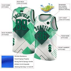 White, Kelly Green & Black Geometric Shapes City Edition Custom Basketball Jerseys for Men and Women